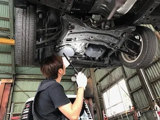 点検・整備には欠かせない設備で、セルフチェックではなかなか目が届かない箇所まで、油圧式リフトがあればしっかりチェックできます。